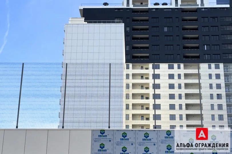 Ограждение спортивной площадки протяженностью 95 пог.м. из панелей 3Д, высотой 4 м. на готовое основание на закладных по крыше паркинга