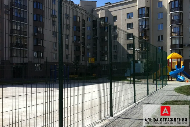 Ограждение спортивной площадки протяженностью 67 пог.м. из панелей 3Д, высотой 3 м., установка калитки